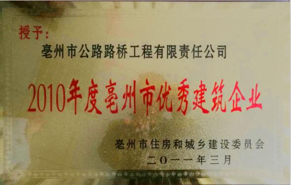 亳州市公路路橋工程有限責任公司是亳州市具有國家二級總承包資質的公路工程施工企業,它的前身是亳州市公路工程處。